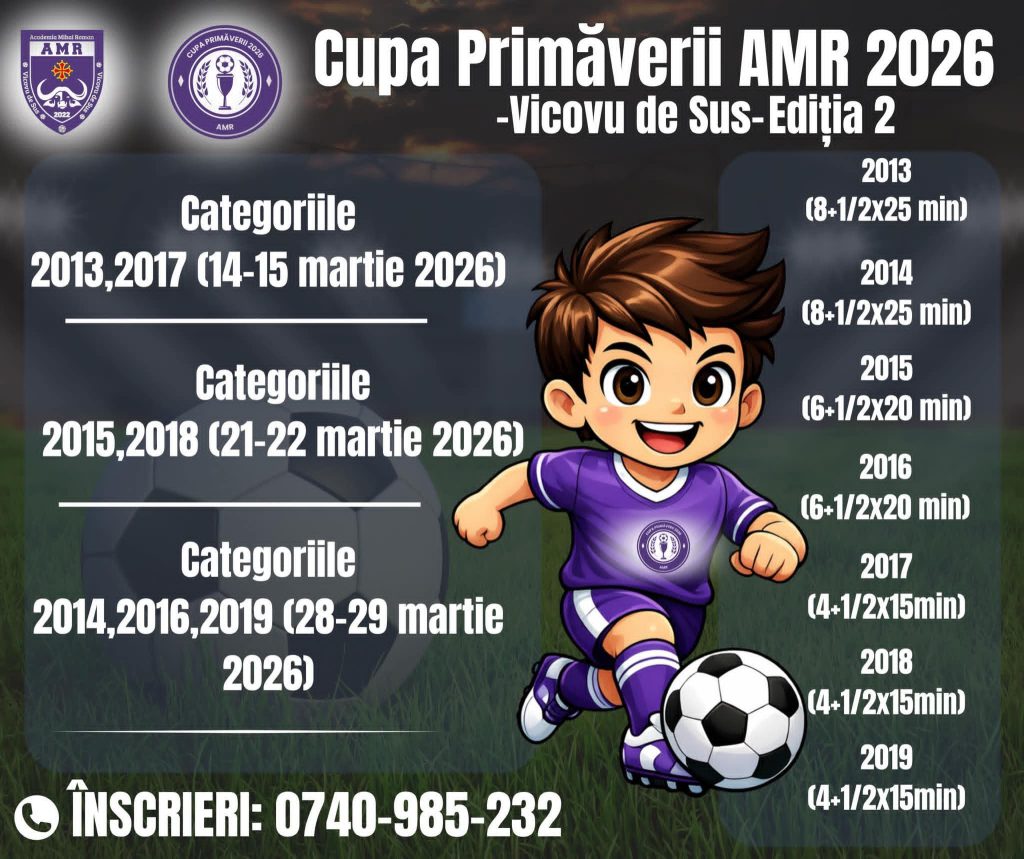 Cupa Primăverii AMR 2026 – Vicovu de Sus, Ediția a II-a este o competiție dedicată copiilor și juniorilor, menită să ofere experiență competițională, dezvoltare sportivă și spirit de echipă.